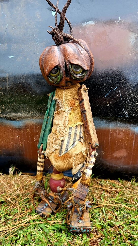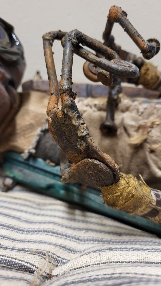 Measures Approx. 22" Tall. Multiple display options. Features my One of a Kind Handmade Eyes and Original Sculpts and Welded Hands.