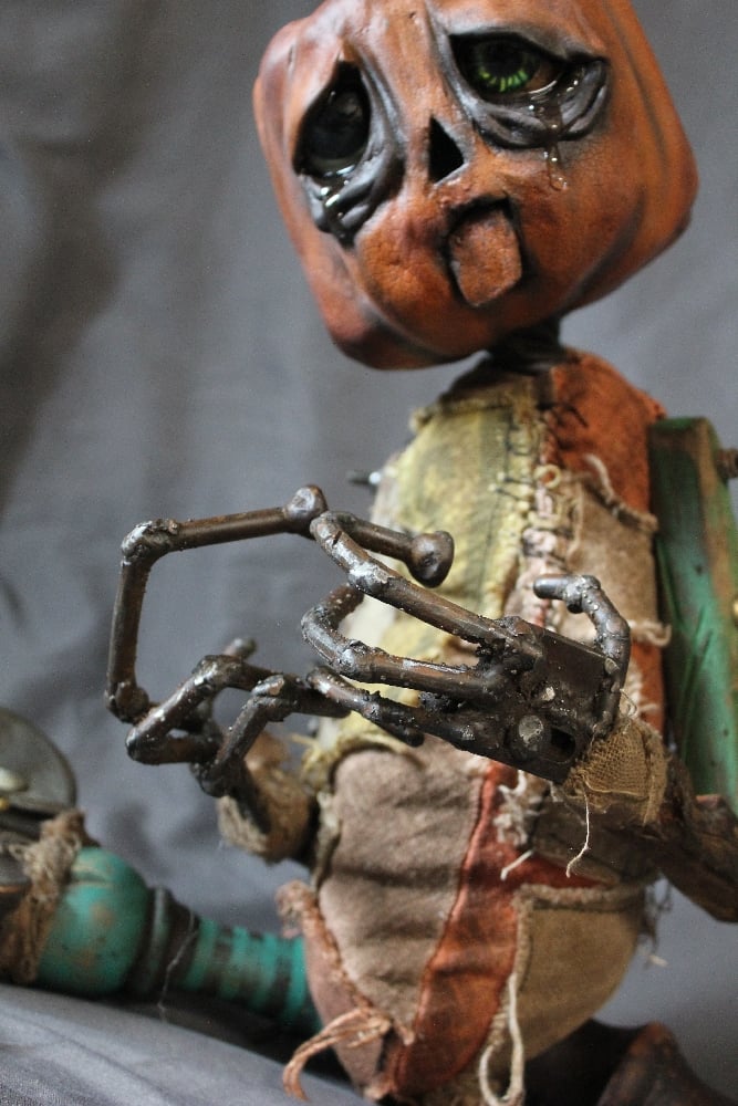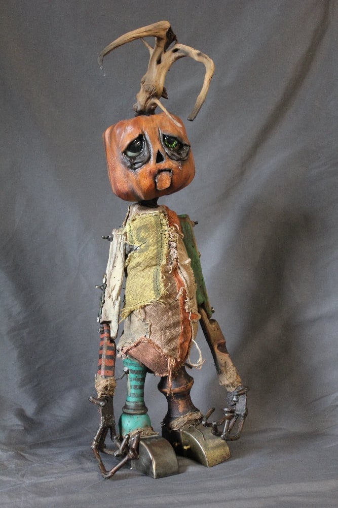 Measures Approx. 24" Tall. Multiple display options. Features my One of a Kind Handmade Eyes and Original Sculpts and Welded Hands.