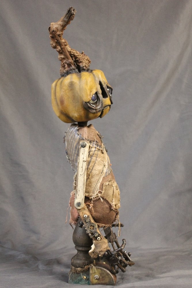 Measures Approx. 23" Tall. Multiple display options. Features my One of a Kind Handmade Eyes and Original Sculpts and Welded Hands.