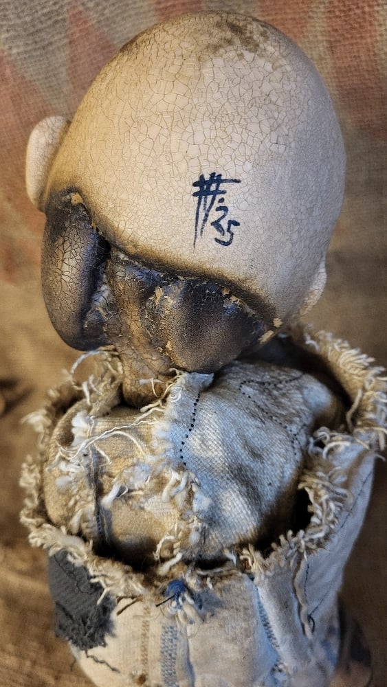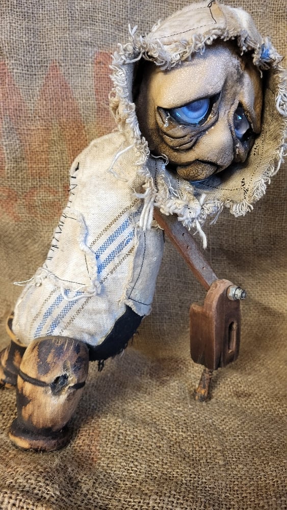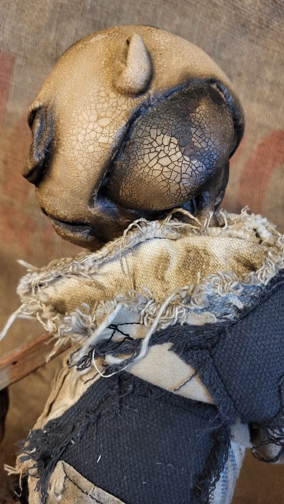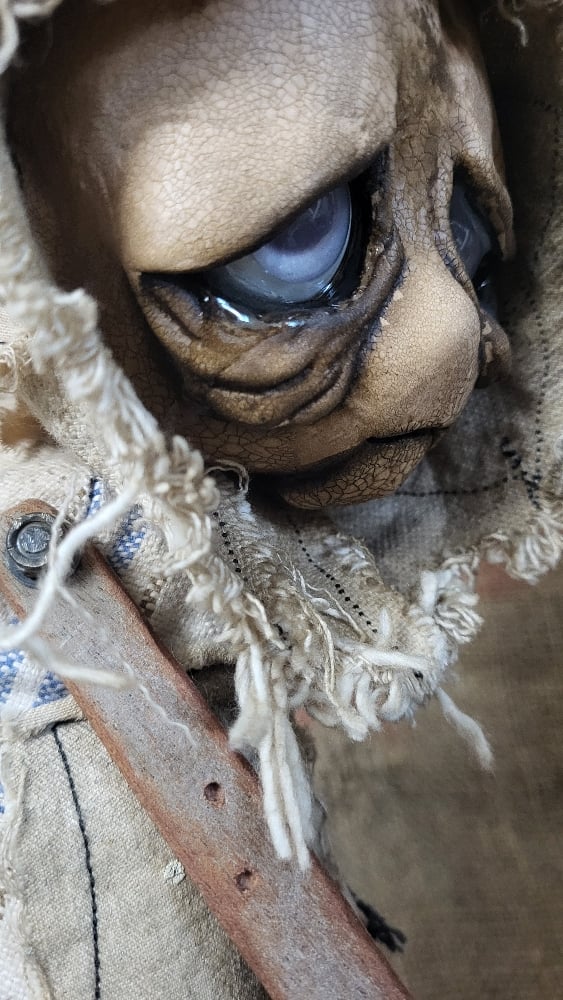 Measures Approx. 17" Tall. Multiple display options. Features my One of a Kind Handmade Eyes and Original Sculpts.