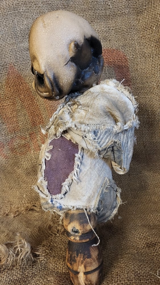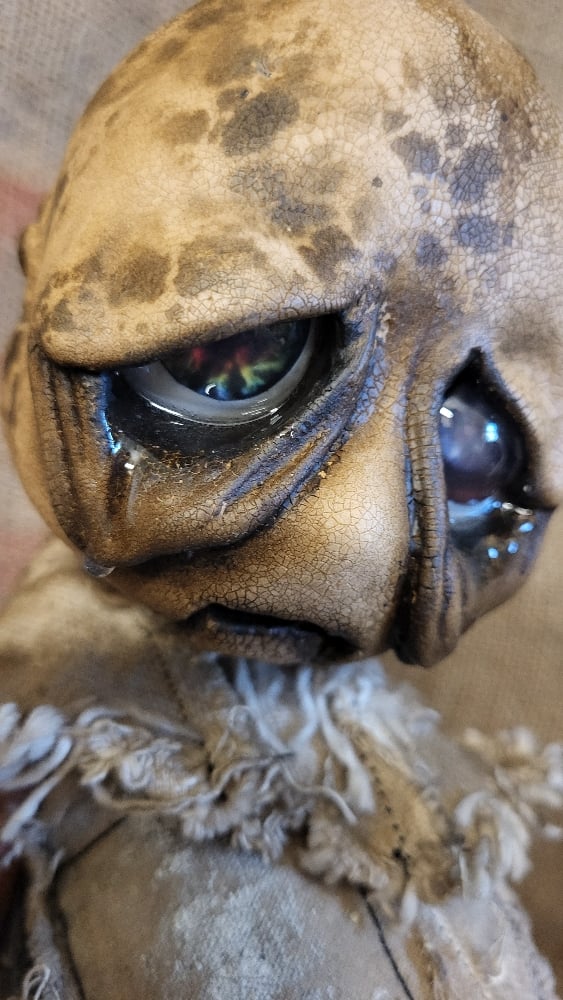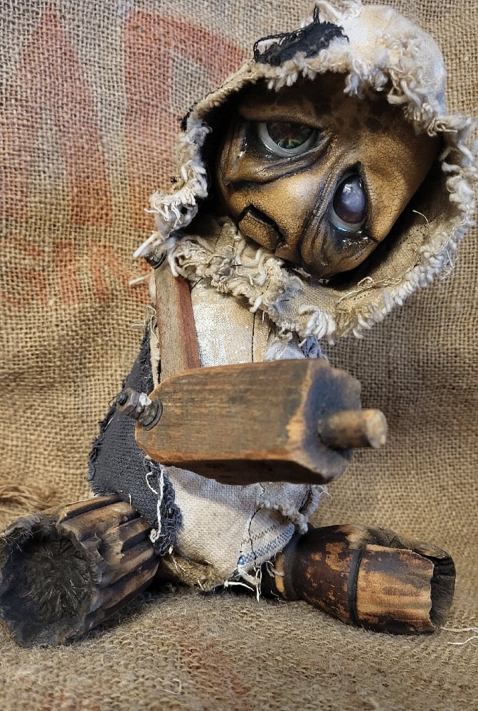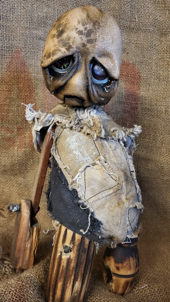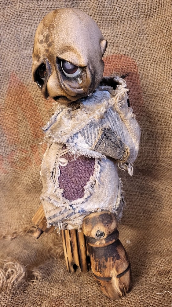 Measures Approx. 17" Tall. Multiple display options. Features my One of a Kind Handmade Eyes and Original Sculpts.