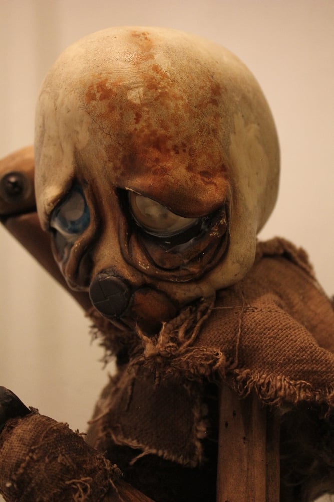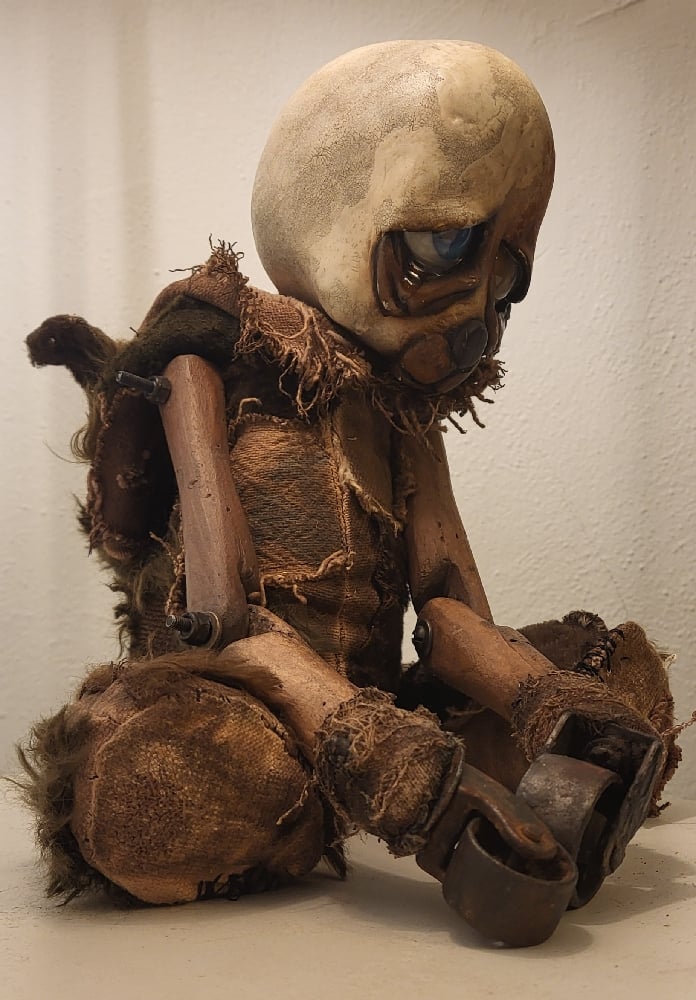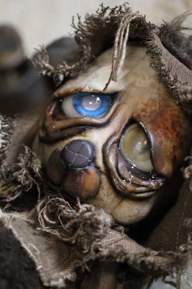 Measures Approx. 16" Tall. Multiple display options. Features my One of a Kind Handmade Eyes and Original Sculpts.